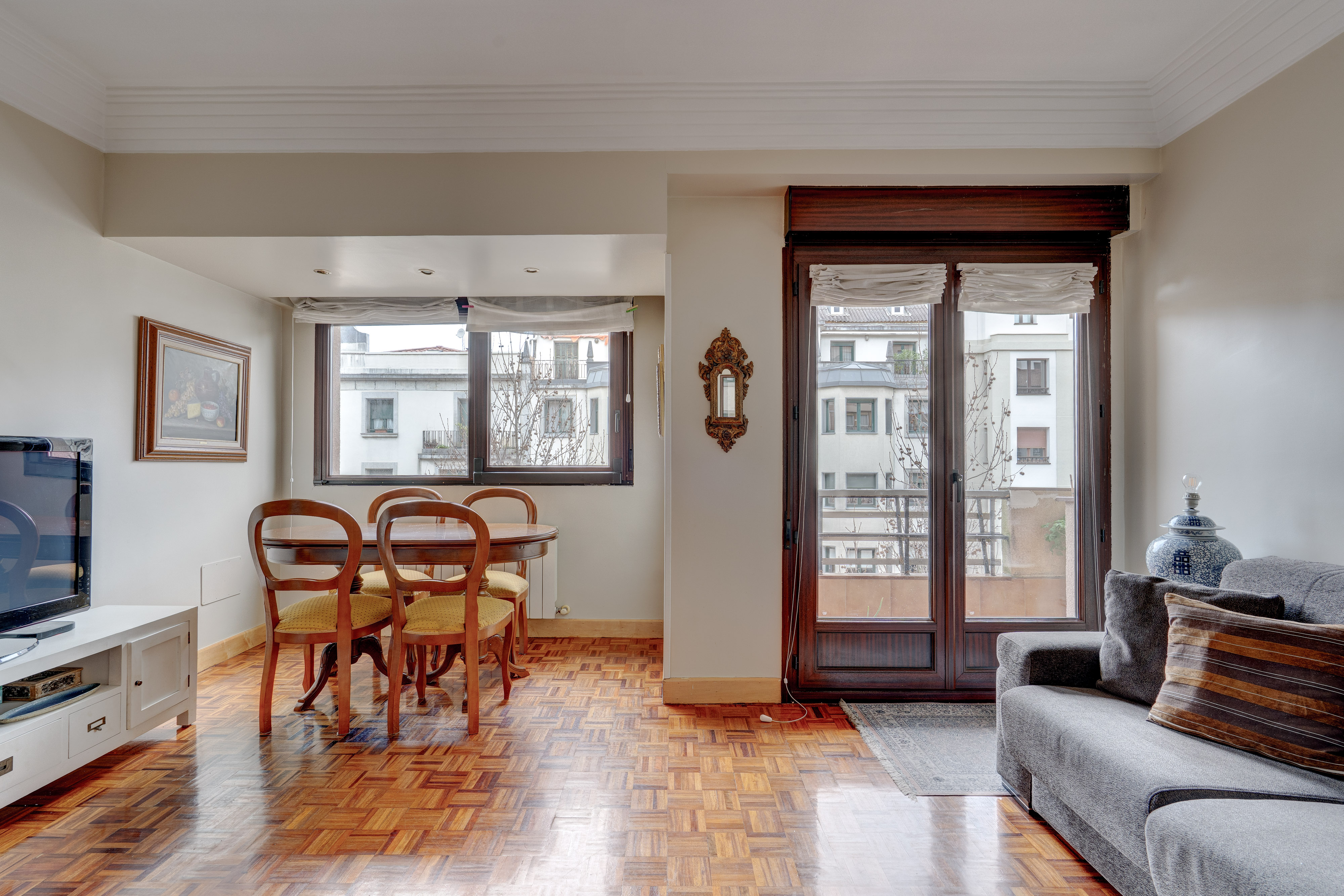 Desde el salón se accede a un balcón con vistas al propio Paseo Colón, un espacio que permite disfrutar del pulso de la ciudad desde casa. La vivienda se encuentra bien conservada y permite entrar a vivir desde el primer momento.